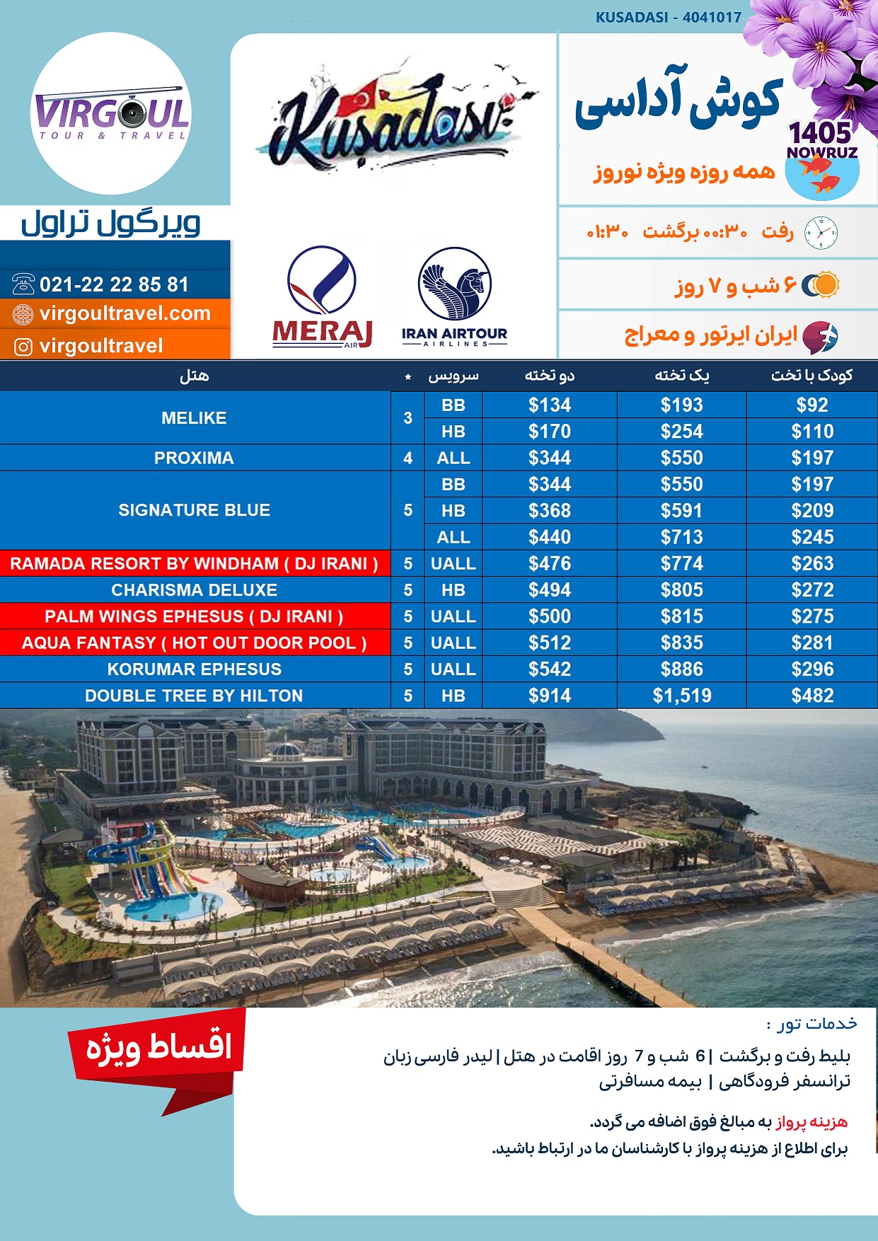 💳 تور اقساطی کوش آداسی نوروز 1405