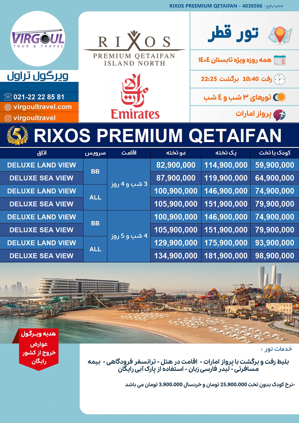 قیمت تور قطر هتل رکسوس پرمیوم قطیفان به عوامل زیر بستگی دارد: