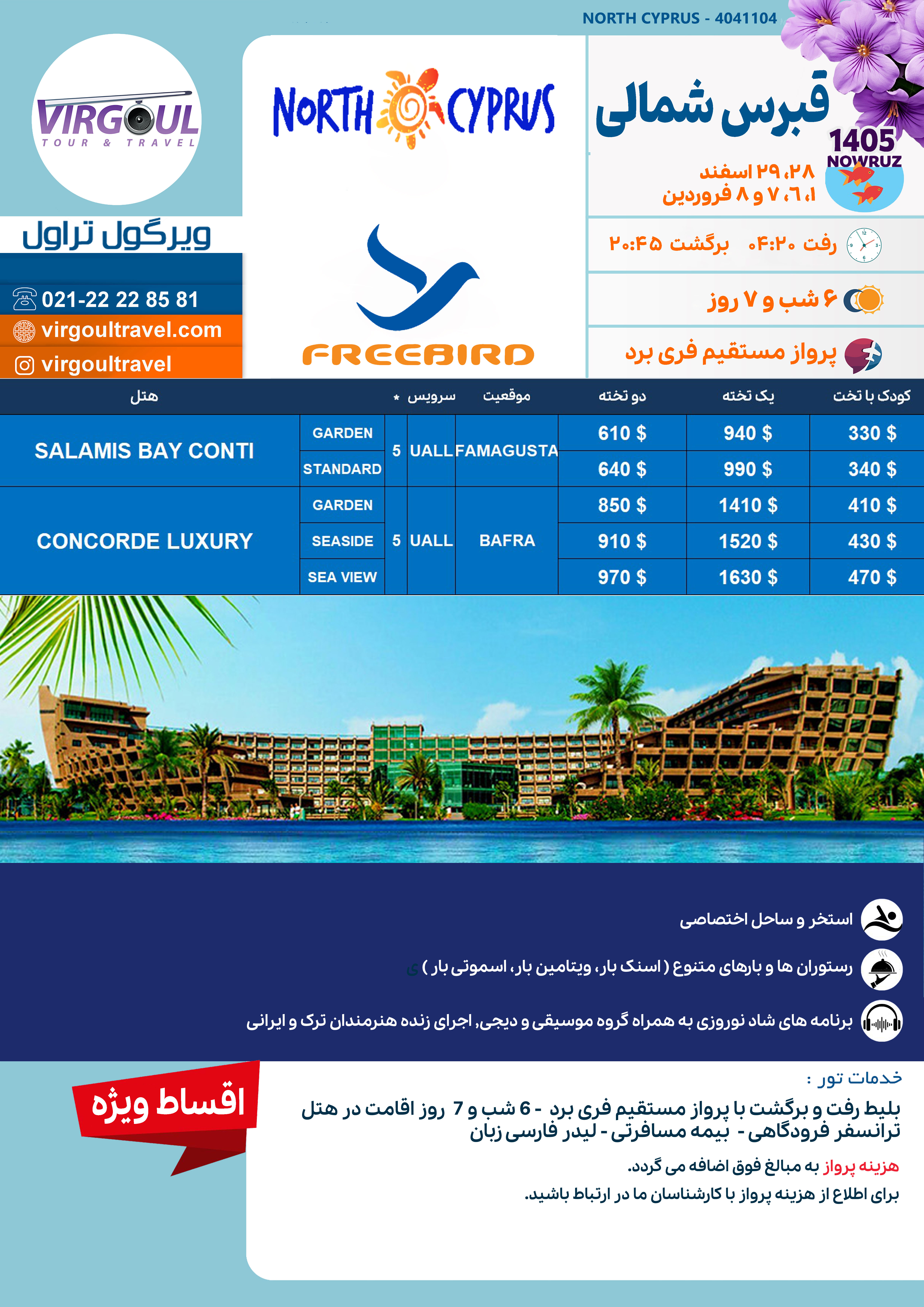 با توجه به اینکه ویرگول مجری مستقیم تور قبرس شمالی هتل سالامیس بی است، میتوانید این تور را با بهترین قیمت و خدمات رزرو کنید.