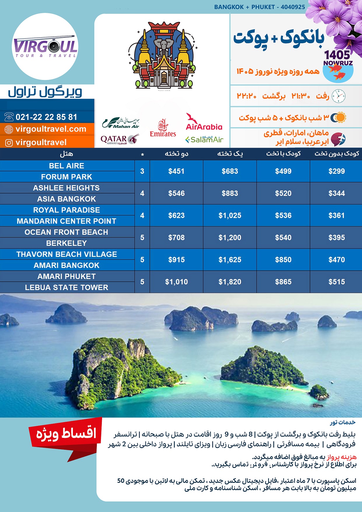 تور بانکوک پوکت ویژه نوروز 1405 - قیمت تور بانکوک پوکت نوروز 1405 - رزرو تور بانکوک پوکت نوروز 1405 - تور بانکوک پوکت نوروز 1405 - تور اقساطی بانکوک پوکت نوروز 1405