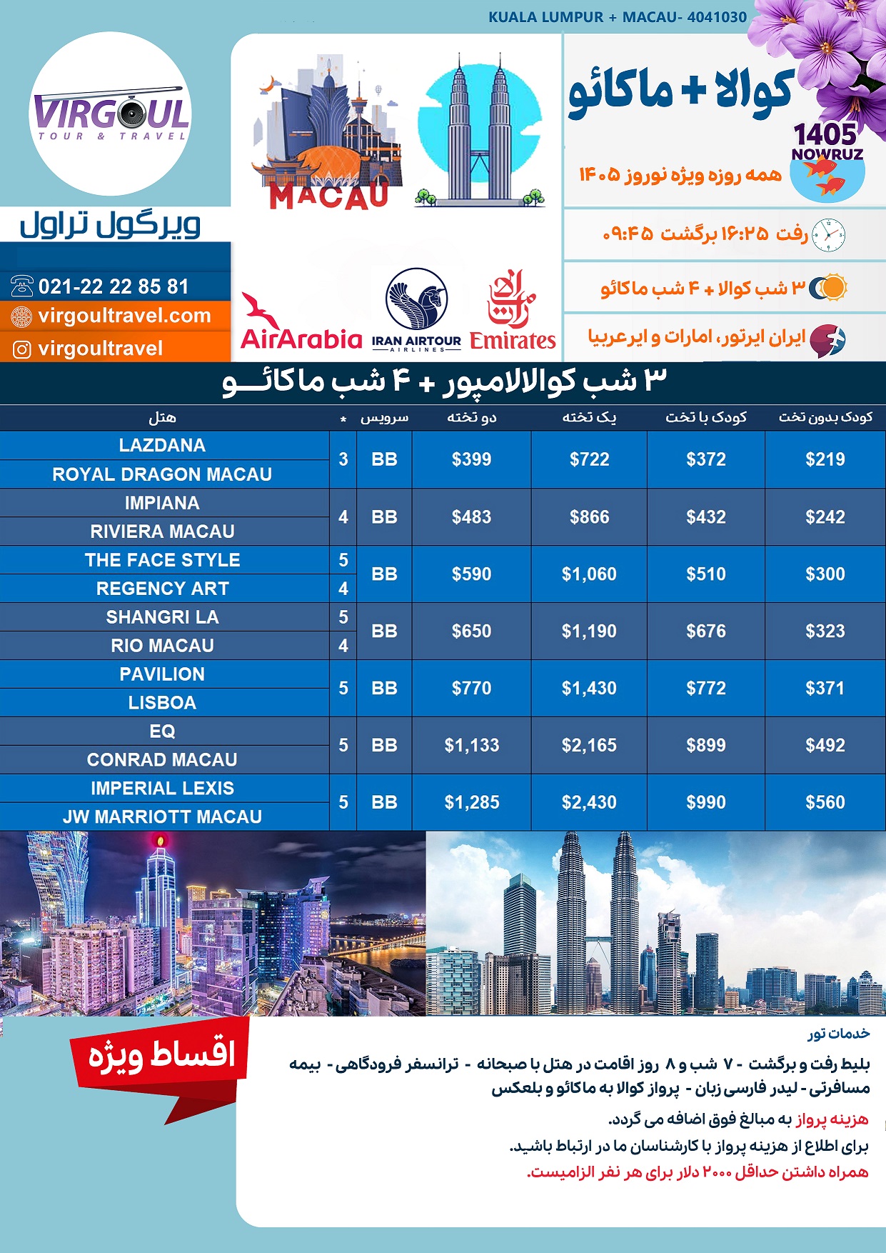 💳 تور اقساطی کوالالامپور ماکائو نوروز 1405