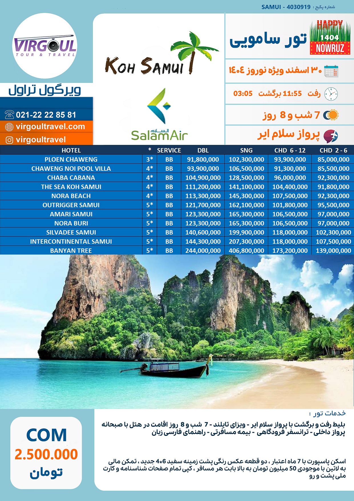 تور سامویی ویژه نوروز 1405 - قیمت تور سامویی نوروز 1405 - رزرو تور ساموئی نوروز 1405 - تور سامویی نوروز 1406