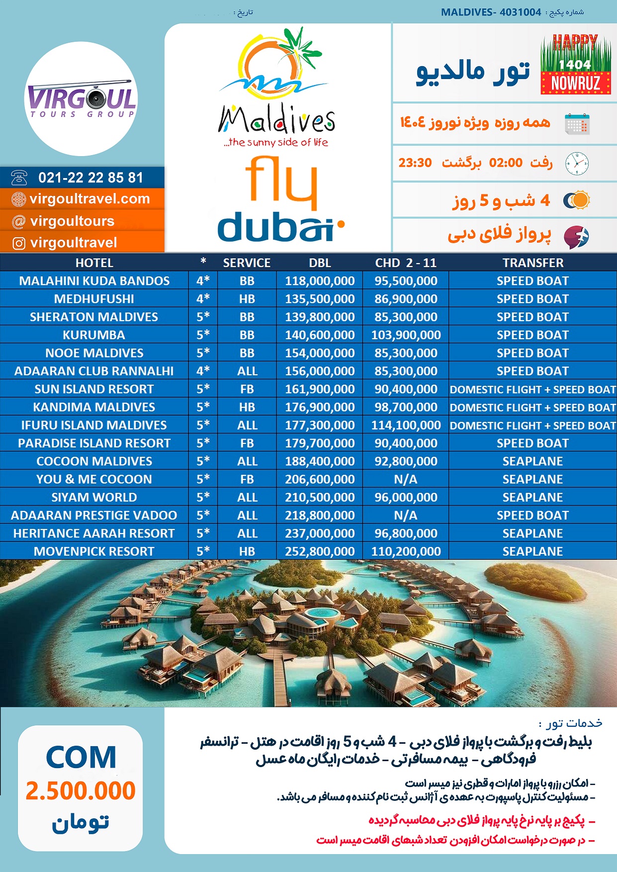 تور مالدیو نوروز 1405 - قیمت تور مالدیو نوروز 1405 - کارگزار مالدیو - تور لحظه آخری مالدیو - تور مالدیو نوروز 1405