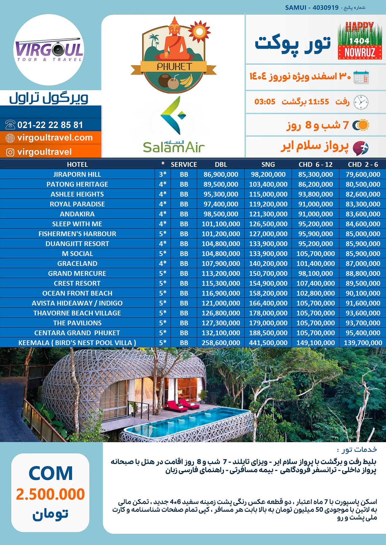 تور پوکت ویژه نوروز 1405 - قیمت تور پوکت نوروز 1405 - رزرو تور پوکت نوروز 1405 - تور پوکت نوروز 1405