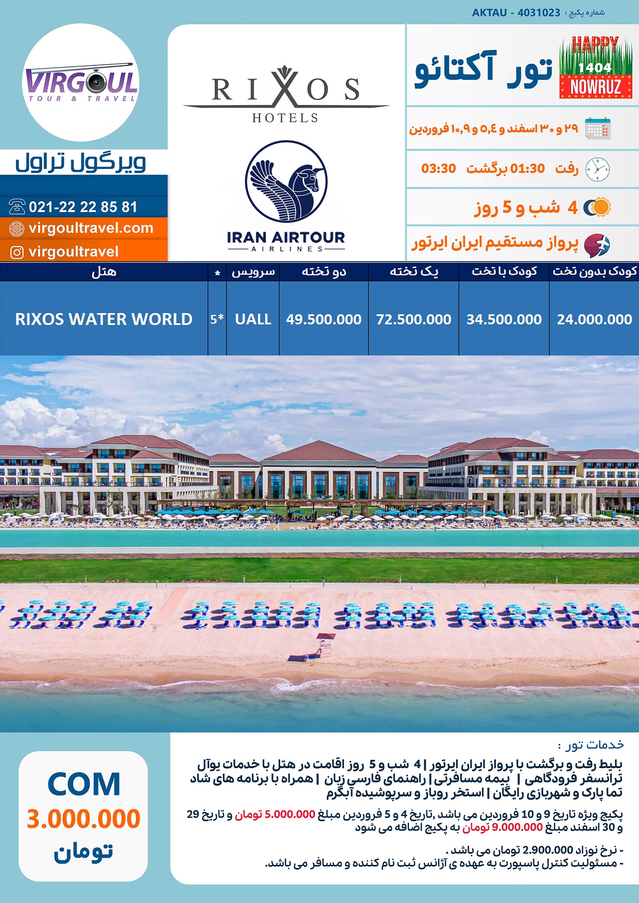 تور قزاقستان نوروز 1405 - تور آکتائو نوروز 1405 - تور قزاقستان هتل رکسوس واتر ورد - تور قزاقستان آکتائو نوروز 1405