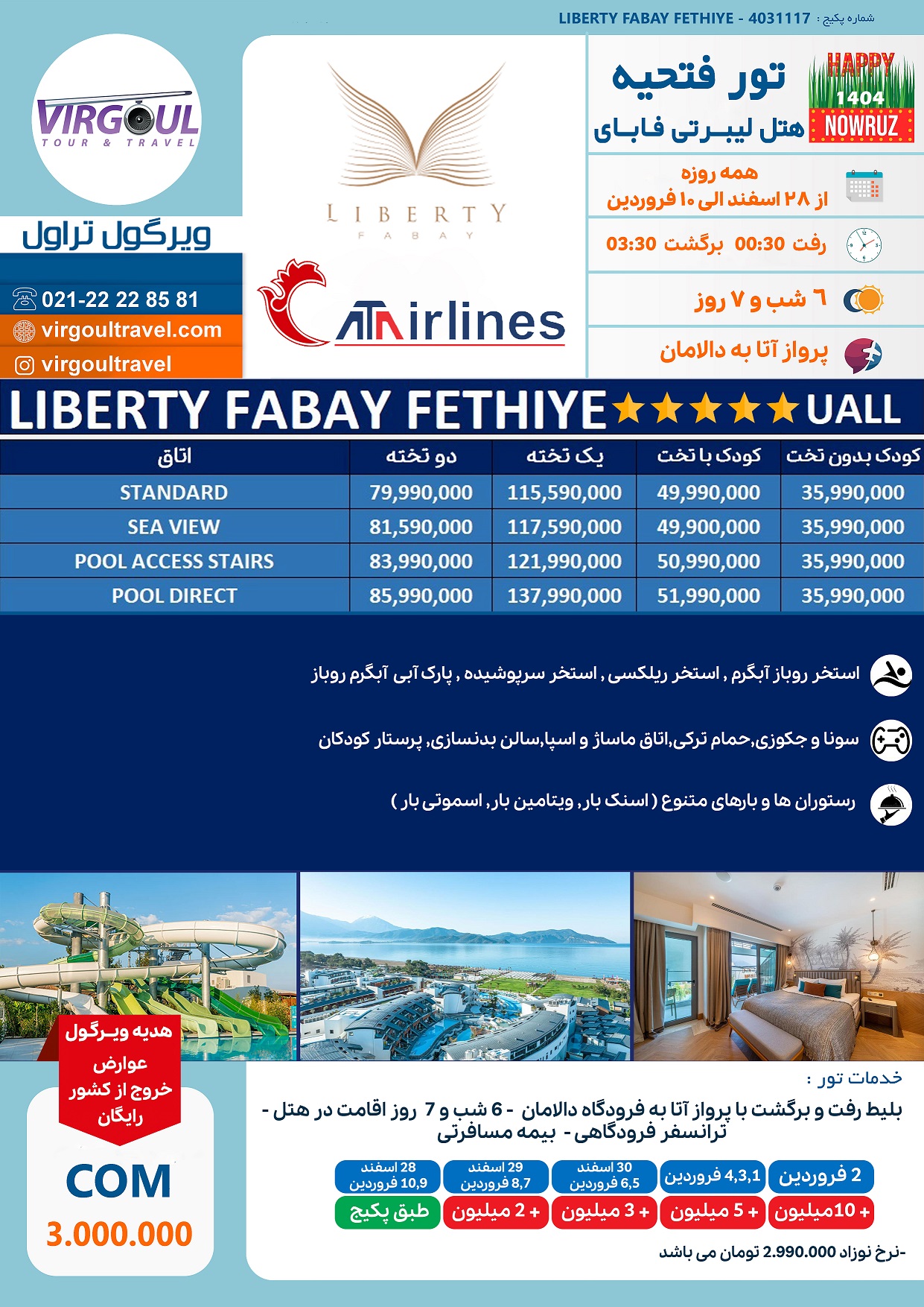 ویرگول تراول بهعنوان مجری مستقیم تورهای فتحیه، پکیج ویژهای برای اقامت در هتل لیبرتی فابای در ارائه میدهد که شامل: