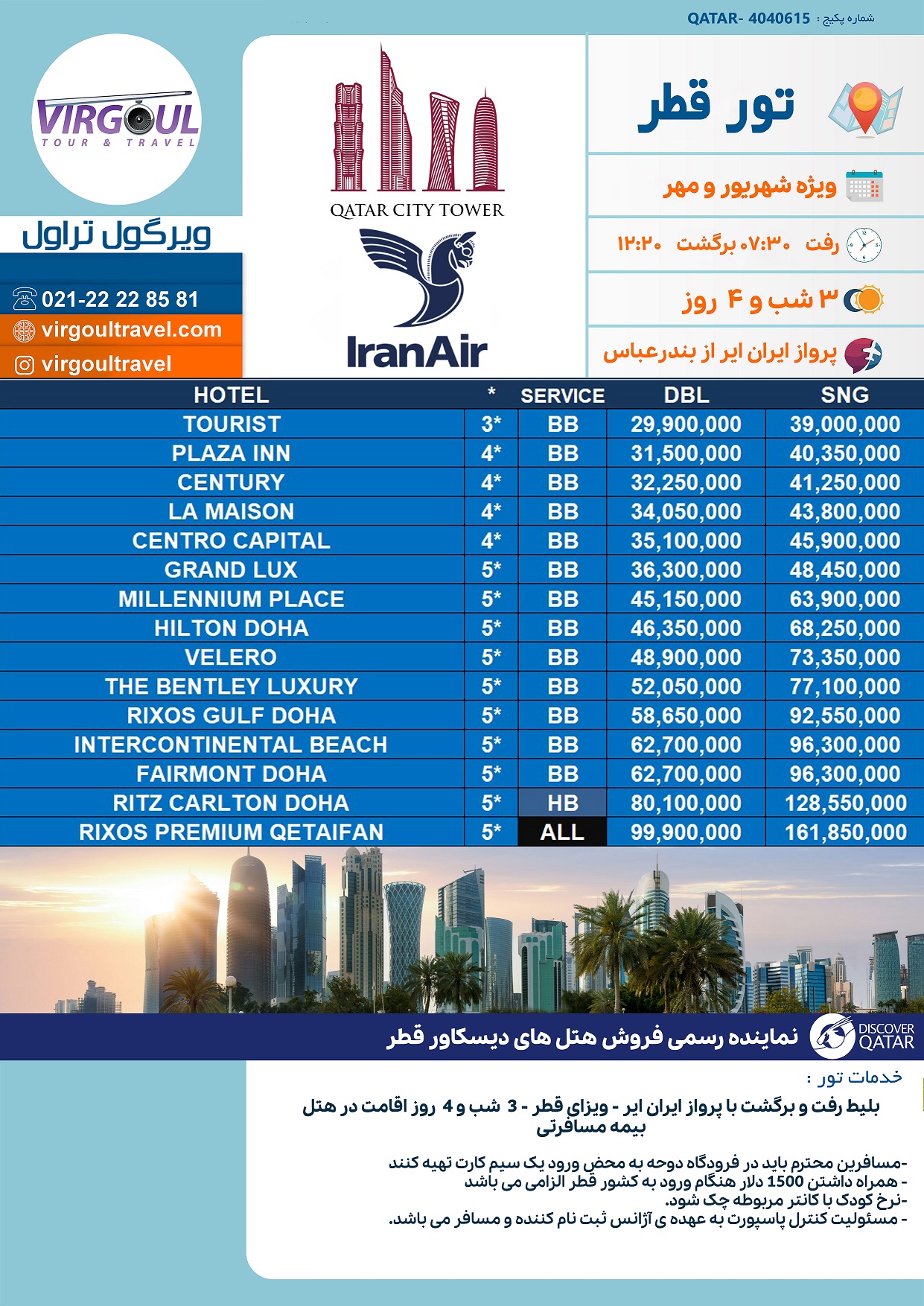 تور قطر از بندرعباس | قیمت تور قطر با پرواز مستقیم ایران ایر از بندرعباس | تور دوحه از بندرعباس