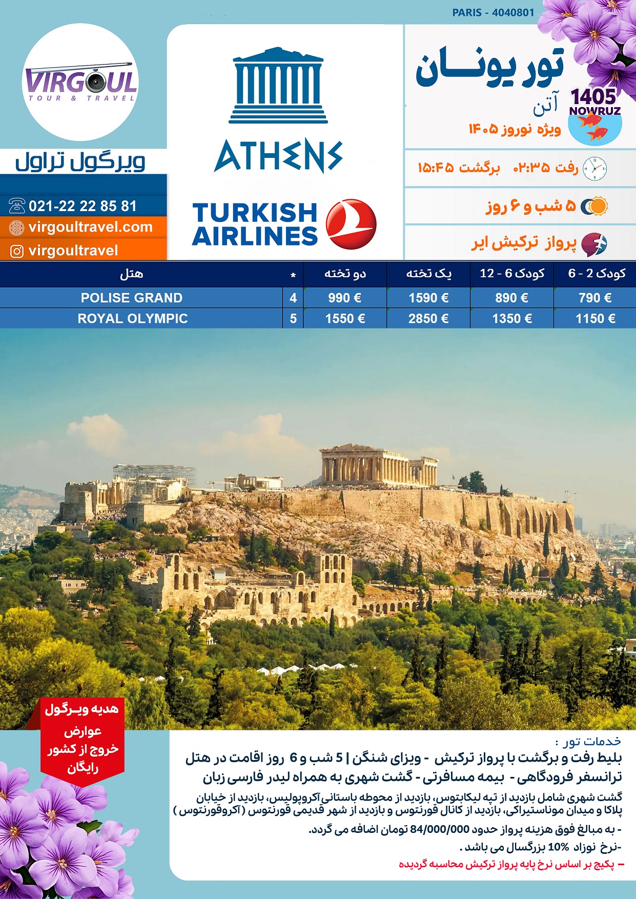 تور یونان نوروز 1405 | قیمت تور آتن نوروز 1405 | تور یونان ویژه عید نوروز | تور ارزان یونان نوروز 1405