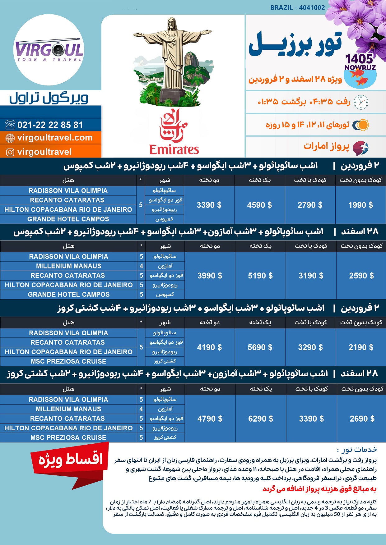💳 تور اقساطی برزیل نوروز 1405