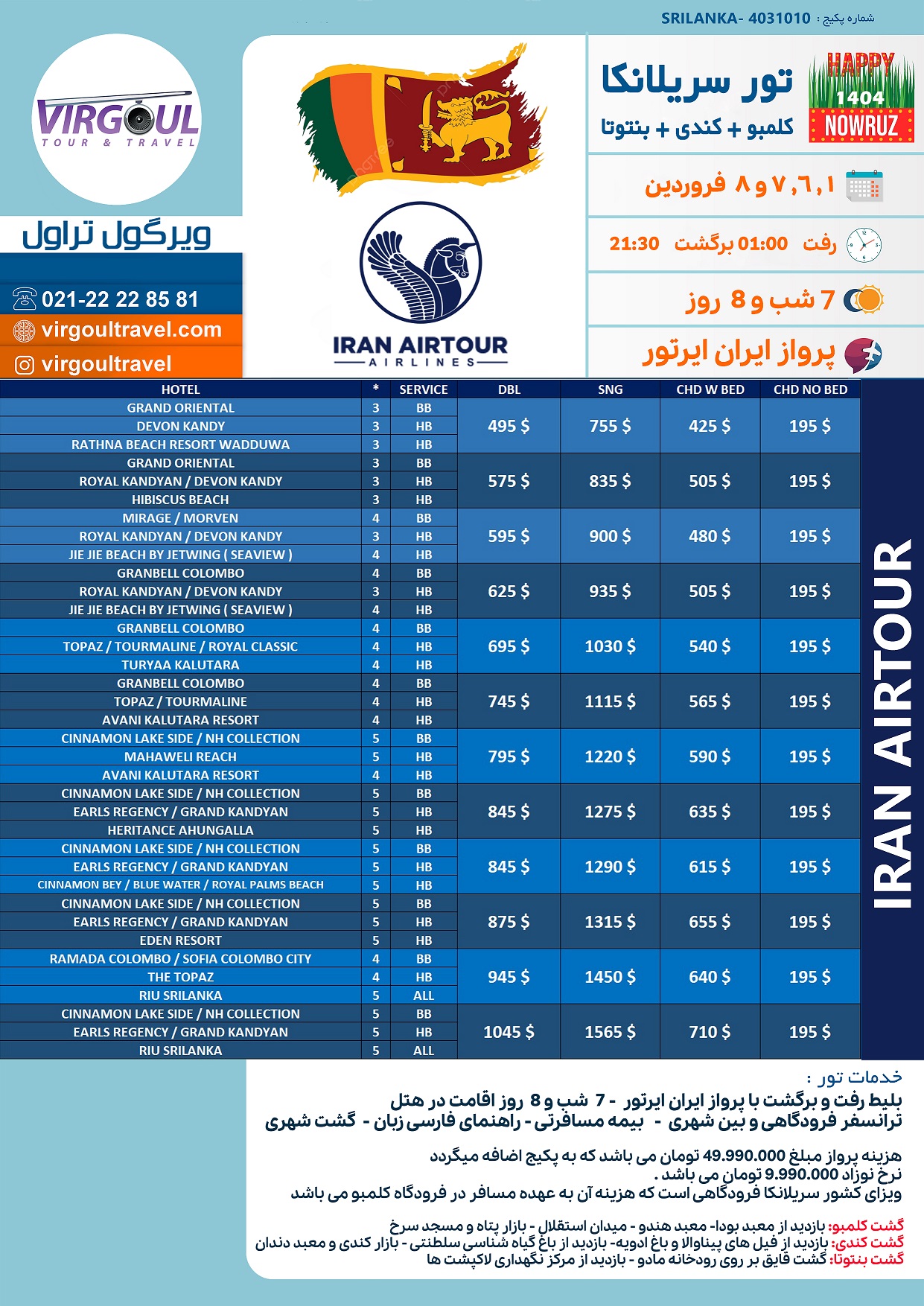 تور سریلانکا نوروز 1405 - قیمت تور سریلانکا نوروز 1405 - کارگزار سریلانکا - تور سریلانکا ارزان
