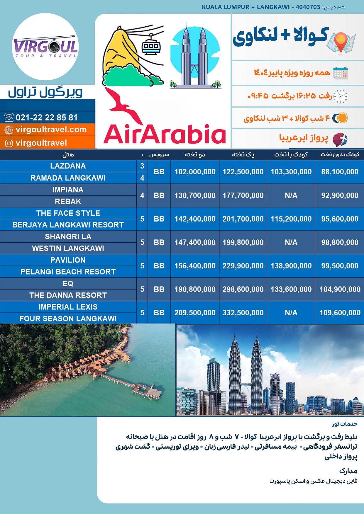 قیمت تور کوالالامپور+ لنکاوی پرواز ایر عربیا